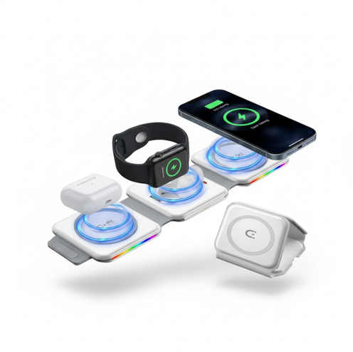 شاحن السلكي مغناطيسي 3 في 1 – شحن سريع وعملي