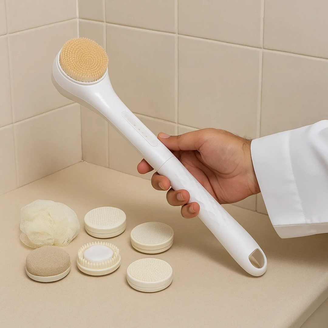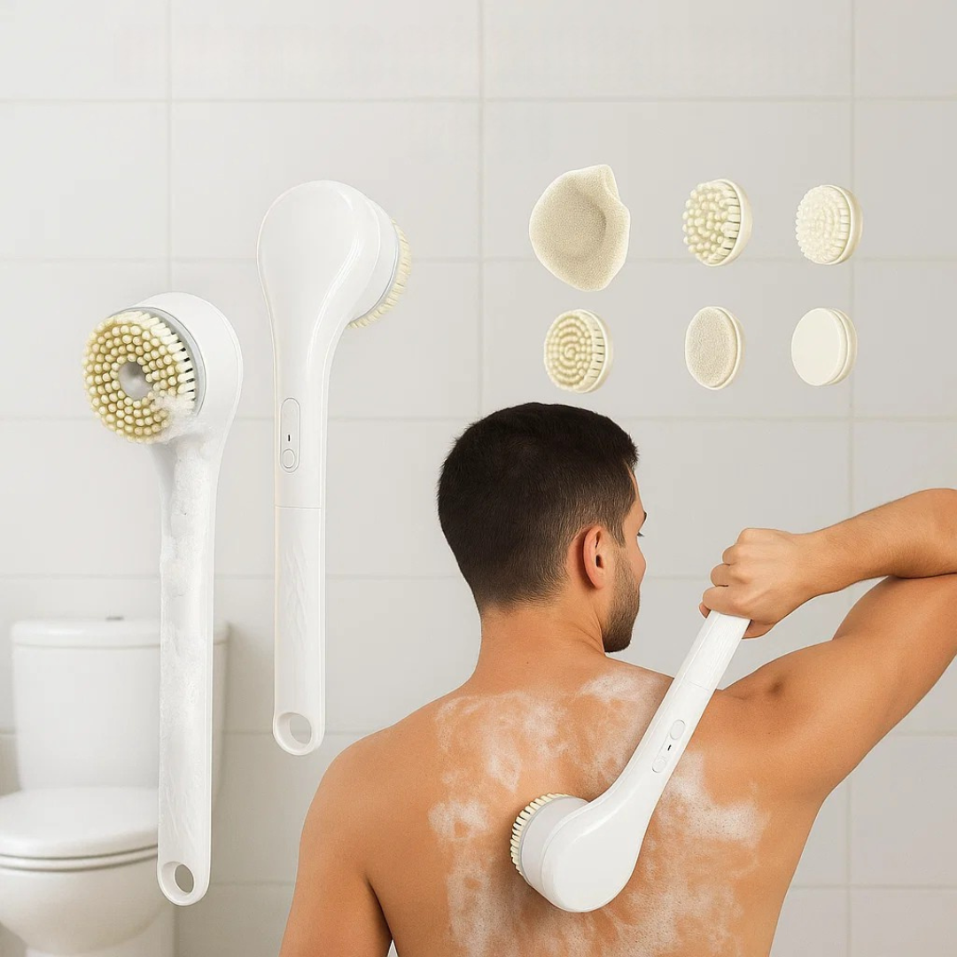 جهاز الاستحمام الكهربائي 6 في 1 ، يتميز بدوران سريع ، يشمل فرشاة تنظيف، فرشاة تدليك، حجر القدم، إسفنجة، وفرشاة ناعمة